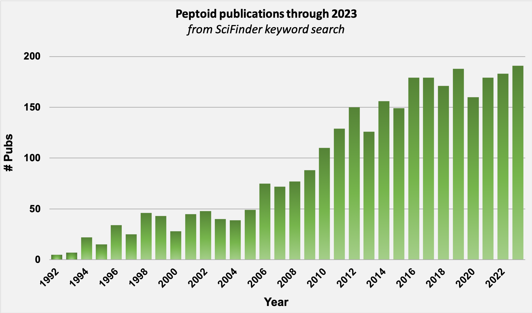 The International Community for the Advancement of Peptoids has its roots at Chiron Corp. (Emeryville, CA) where peptoids were first discovered in the early 1990’s. Industry-academic collaborations forged with UC San Francisco and UC Berkeley created a community of enthusiastic researchers, who saw the broad fundamental and practical potential of these molecules. An annual meeting was formalized in 1999, where the 1st Peptoid Summit was convened.